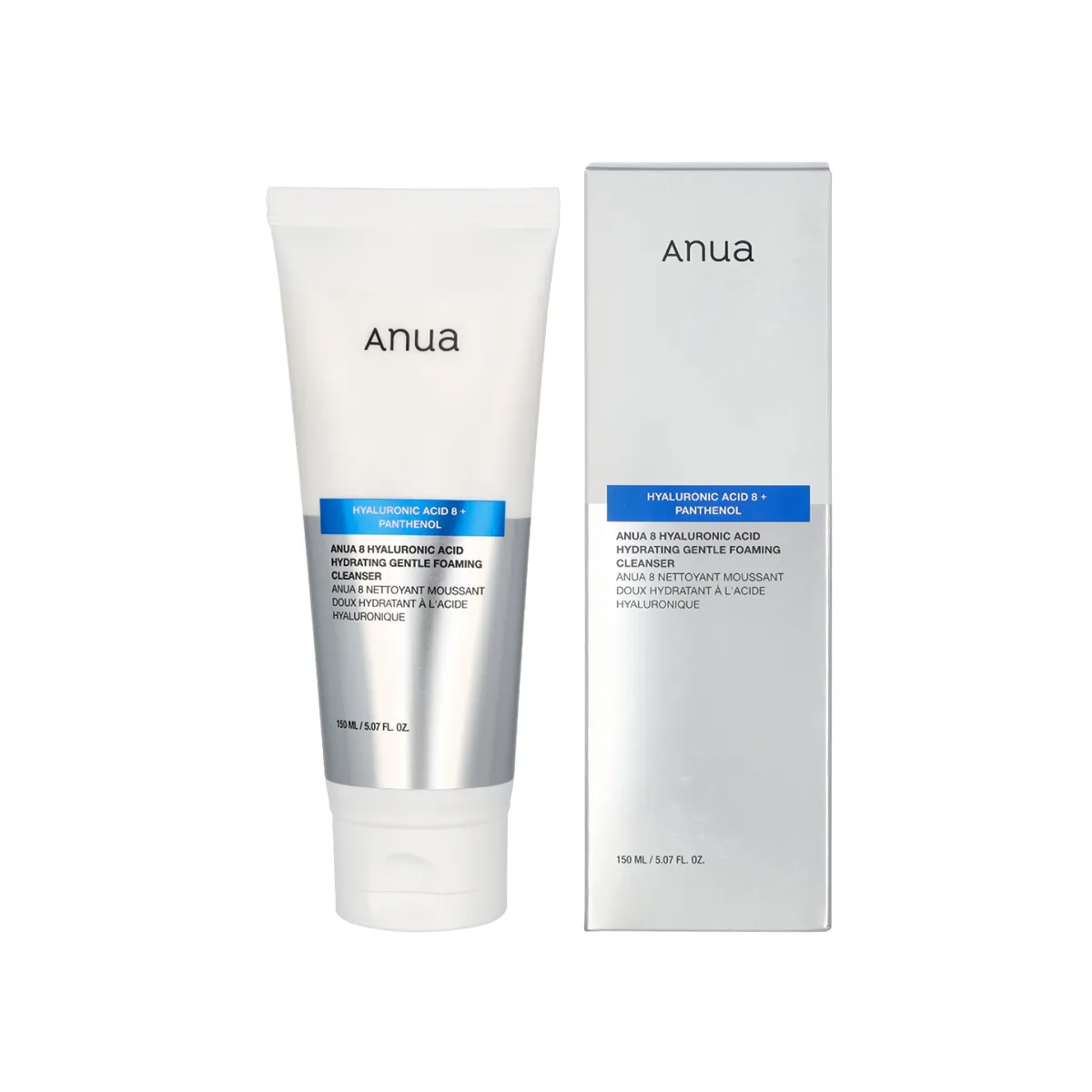 ANUA 8 Hyaluronic Acid Hydrating Gentle Foaming Cleanser ir maigi putojošs attīrītājs ar 8 veidu hialuronskābes kompleksu, radītu daudzslāņu mitrināšanai. Lielas molekulmasas formas iedarbojas uz virsmas, mazas un ļoti mazas – difundē dziļāk, bet sodium hyaluronate crosspolymer un sodium acetylated hyaluronate palīdz radīt ilgstošāku, ūdens magnētam līdzīgu plēves komfortu. Rezultāts: tīrība bez savilkuma sajūtas, āda izskatās elastīga, nepārslogota un maiga kā pēc vieglas mitruma kompreses.