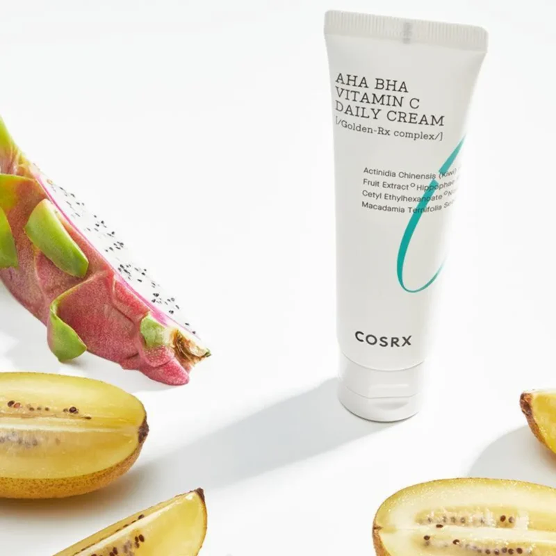 COSRX Refresh AHA BHA Vitamin C Daily Cream apvieno trīs spēcīgas sastāvdaļas, kas palīdz uzlabot ādas tekstūru un toni. AHA (alfa hidroksi skābes) un BHA (beta hidroksi skābes) efektīvi eksfoliē ādu, atbrīvojot to no mirušām šūnām. Šie komponenti veicina šūnu atjaunošanos, kas nozīmē, ka jūsu āda izskatīsies mirdzošāka un svaigāka.