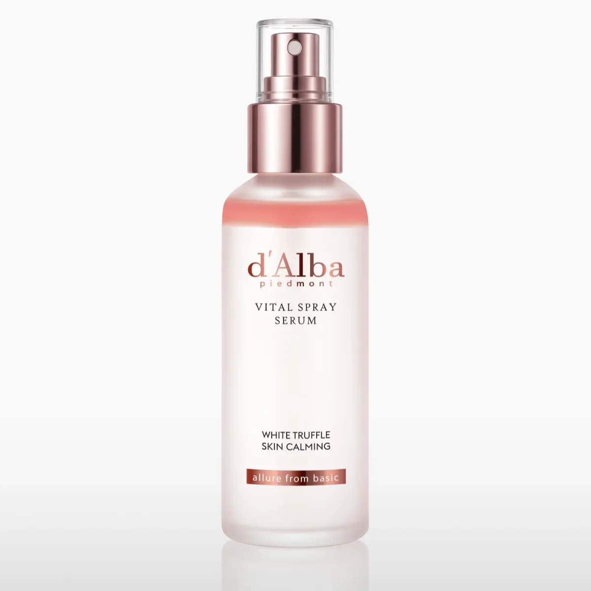 DALBA White Truffle Vital Spray Serum – divfāzu, smalki izsmidzināma seruma migla ar balto trifeļu ekstraktu un zinātniski pamatotu humektantu un emolientu kombināciju. Baltās trifeles (Tuber magnatum) bioaktīvie savienojumi darbojas kā antioksidantu vairogs: tie palīdz neitralizēt reaktīvās skābekļa formas un pasargā kolagēna vidi no oksidatīvā stresa. Vienlaikus glicerīns un hialuronskābe piesaista ūdeni raga slānī, bet skvalāns un augu eļļas bloķē mitrumu un stiprina hidrolipīdās plēves integritāti.