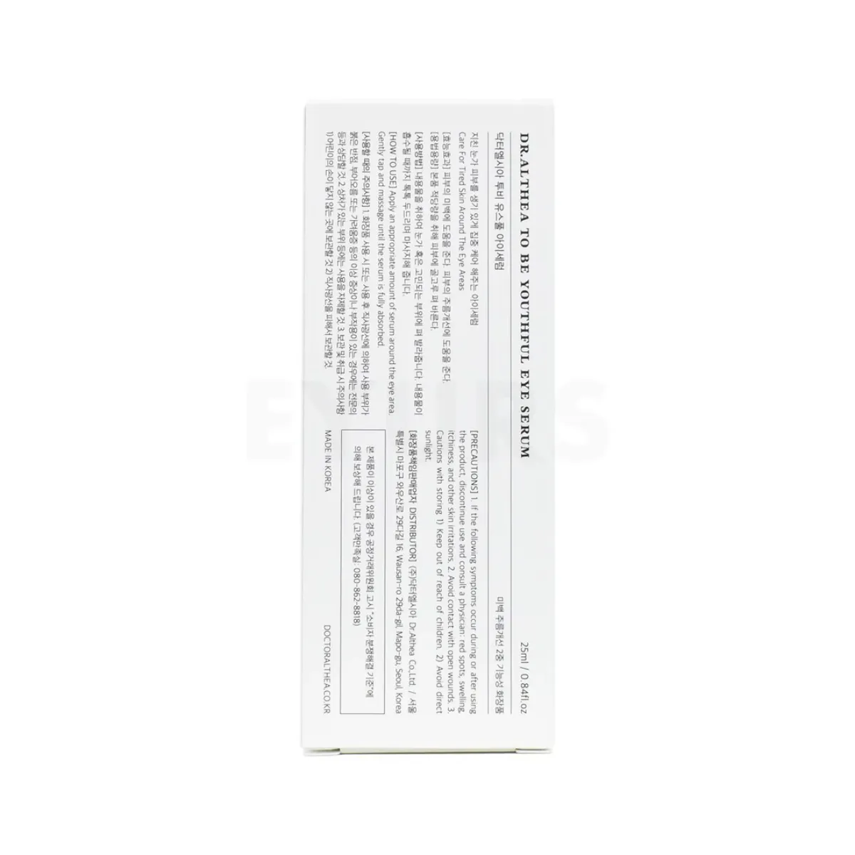 DR. ALTHEA To Be Youthful Eye Serum – atjaunojošs acu serums rada tieši šādu līdzsvara efektu. Viegls, serumam līdzīgs gels, kas ātri iesūcas, tomēr atstāj maigu, poras neaizsprostojošu „mikroplēvīti“ komfortam. Formula ar labi izpētītām aktīvajām vielām darbojas vairākos līmeņos: humektanti piesaista ūdeni, emolienti izlīdzina virsmu, savukārt peptīdi un kofeīns vēršas pret pietūkumu un sīkām grumbiņām.