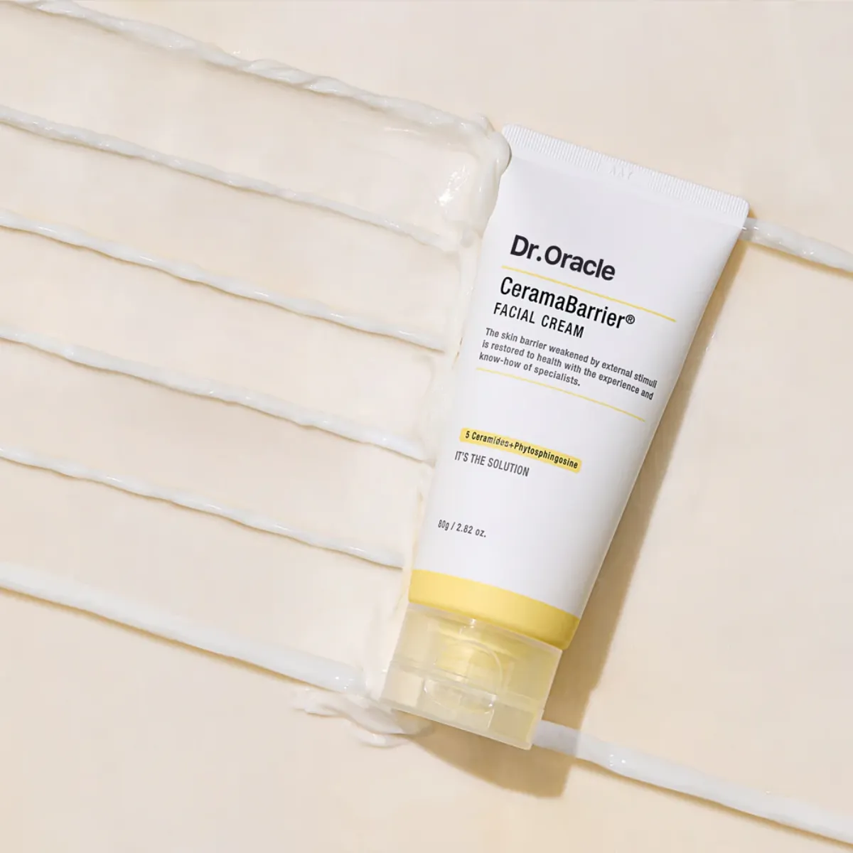 DR. ORACLE Cerama Barrier Facial Cream – mitrinošs barjeru atjaunojošs krēms izstrādāts tā, lai imitētu dabisko raga slāņa „ķieģeļu un javas“ struktūru. Vairāku veidu keramīdi kopā ar holesterīnu un brīvajām taukskābēm veido lamelāru tīklu – elastīgu, bet izturīgu. Šāds lipīdu trio palīdz noslēgt transepidermālo ūdens zudumu, atjauno integritāti un palielina noturību pret kairinātājiem. Rezultāts ir jūtams kā zīdaina, elpojoša plēve bez taukainas sajūtas.