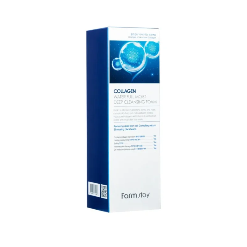 FARMSTAY Collagen Water Full Moist Deep Cleansing Foam nodrošina dziļu un efektīvu ādas attīrīšanu, vienlaikus mitrinot un barojot ādu. Šis attīrošais putojošais līdzeklis ir izstrādāts, lai apvienotu tīrīšanas spēku ar mitrinošām īpašībām. Galvenā sastāvdaļa, kolagēns, ir pazīstama ar spēju uzlabot ādas elastību, samazināt grumbas un sniegt jauneklīgu izskatu.