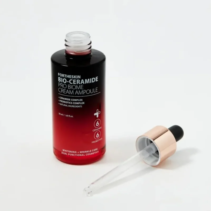 FORTHESKIN Bio-Ceramide Pro-Biome Cream Ampoule ir unikāls ādas kopšanas produkts, kas apvieno mūsdienīgas tehnoloģijas un dabiski sastāvdaļas, lai nodrošinātu dziļu mitrināšanu un aizsardzību. Tas ir formulēts ar bio-keramīdiem un biomiem, kas palīdz stiprināt ādas barjeru, uzlabojot tās spēju saglabāt mitrumu un cīnīties pret ārējām vides ietekmēm.