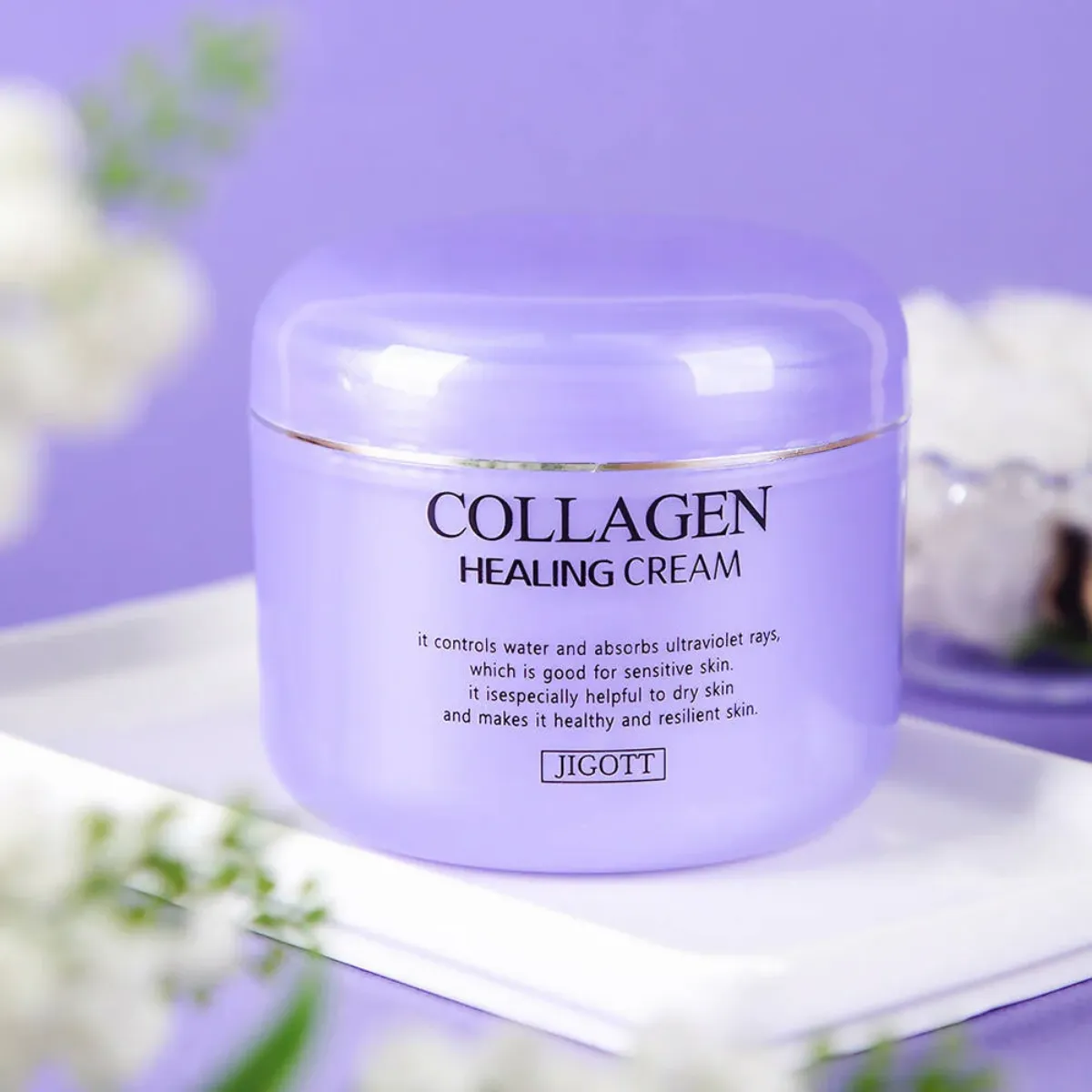 JIGOTT Collagen Healing Cream – kolagēnu atjaunojošs sejas krēms balstās uz vienkāršu, bet zinātniski skaidru loģiku: mitrināšana + barjeras stiprināšana + elastības uzturēšana. JIGOTT filozofija – cieņa pret ādas fizioloģiju un konsekvents, uzticams rezultāts. Tādēļ formula orientēta nevis uz momentālu efektu, bet uz atjaunošanu, kas ir redzama un jūtama.
