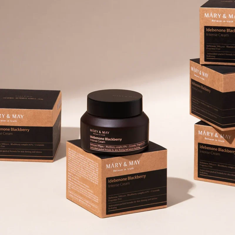 Mary&May Idebenone Blackberry Intense Cream ir mitrinoša un antioksidanta bagāta krēms, kas palīdz ādas novecošanas pazīmju mazināšanā. Šis produkts satur spēcīgu aktīvo sastāvdaļu – idebenonu, kas ir pazīstams ar savām spējām cīnīties pret brīvajiem radikāļiem un uzlabot ādas tekstūru. Šī sastāvdaļa nodrošina izcilu aizsardzību pret oksidatīvo stresu, kas bieži vien ir saistīts ar novecošanu un vides piesārņojumu.