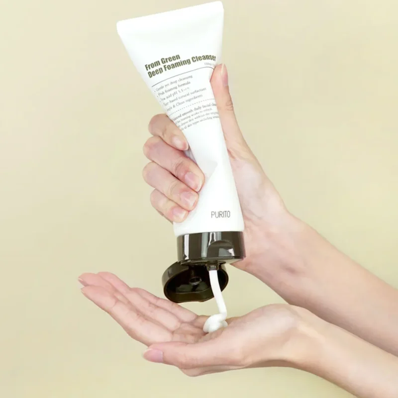 PURITO SEOUL From Green Deep Foaming Cleanser piedāvā sīki apstrādātu formulu, kas apvieno efektivitāti ar ādas kopšanu. Šis attīrošais līdzeklis ir izstrādāts, lai dziļi notīrītu ādu, vienlaikus saglabājot tās mitrumu un aizsargājošo barjeru.
