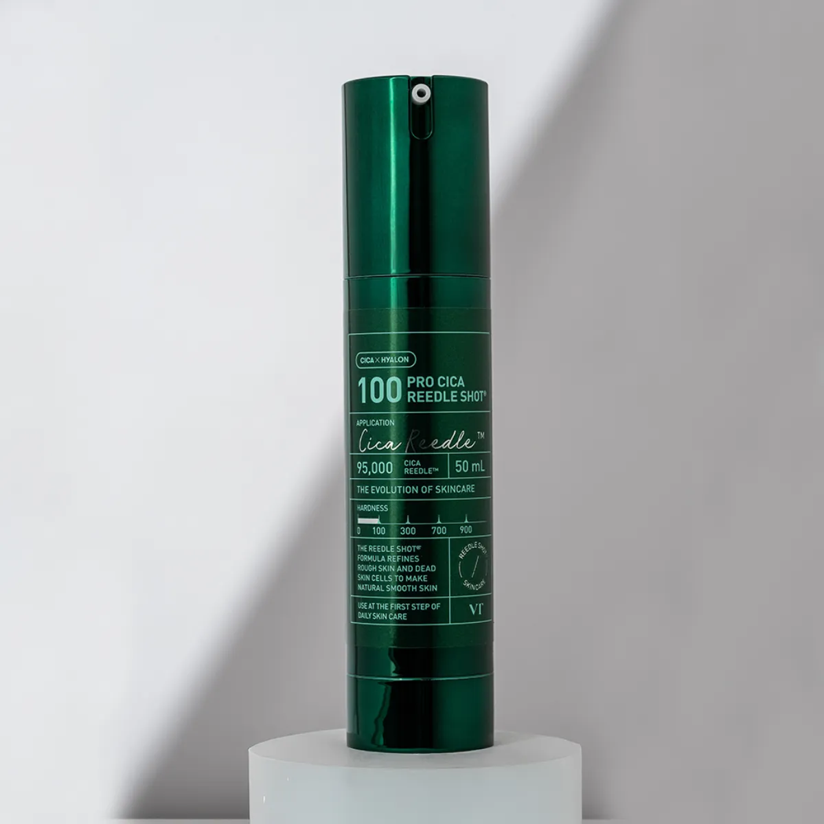 Ne vienmēr ir nepieciešamas agresīvas procedūras, lai āda atjaunotos. Dažreiz pietiek ar gudru mehānisku stimulāciju: mikro izmēra adatiņas izraisa kontrolētu, īslaicīgu reakciju, kas aktivizē ādas aizsardzības mehānismus un veicina atjaunošanos. Šo ideju precīzi iemieso VT COSMETICS Pro Cica Reedle Shot 100.